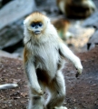 这是一群生活在秦岭深处的金丝猴,在白雪飘飘的山谷里,我从长镜头里发现了一只金丝猴正目不转睛的注视着我,他探头探脑,神态滑稽可爱,如同一个好奇的孩子;同样在长镜头里我捕捉到了雪中觅食的金丝猴母子与我对视的一瞬间。